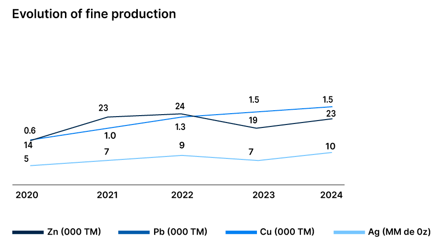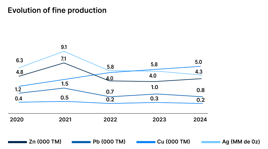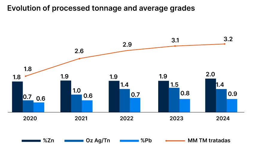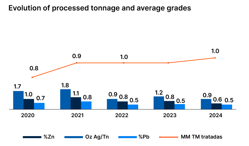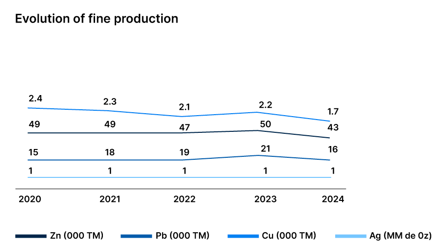 Four operating underground mines, two open pits, five active concentrator plants with a total processing capacity of 26,150 tpd, a 2,500 tpd leaching plant (Oxides), and one concentrator plant currently under care and maintenance (C&M).