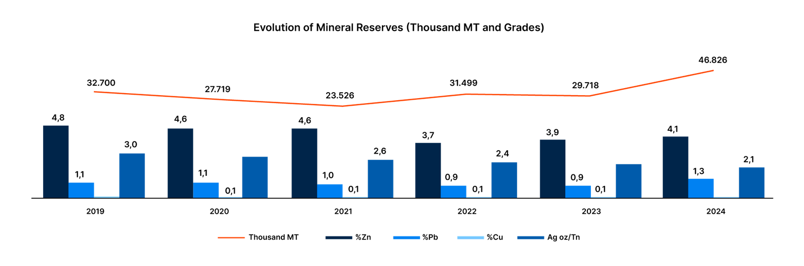 Evolution of Mineral Reserves: Volcan and subsidiaries