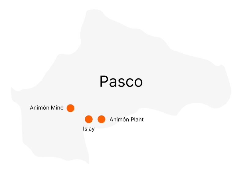 The Chungar Operational Unit, located in the Pasco region, 219 kilometers east of Lima, consists of two underground mines — Animón and Islay — and the Animón concentrator plant.